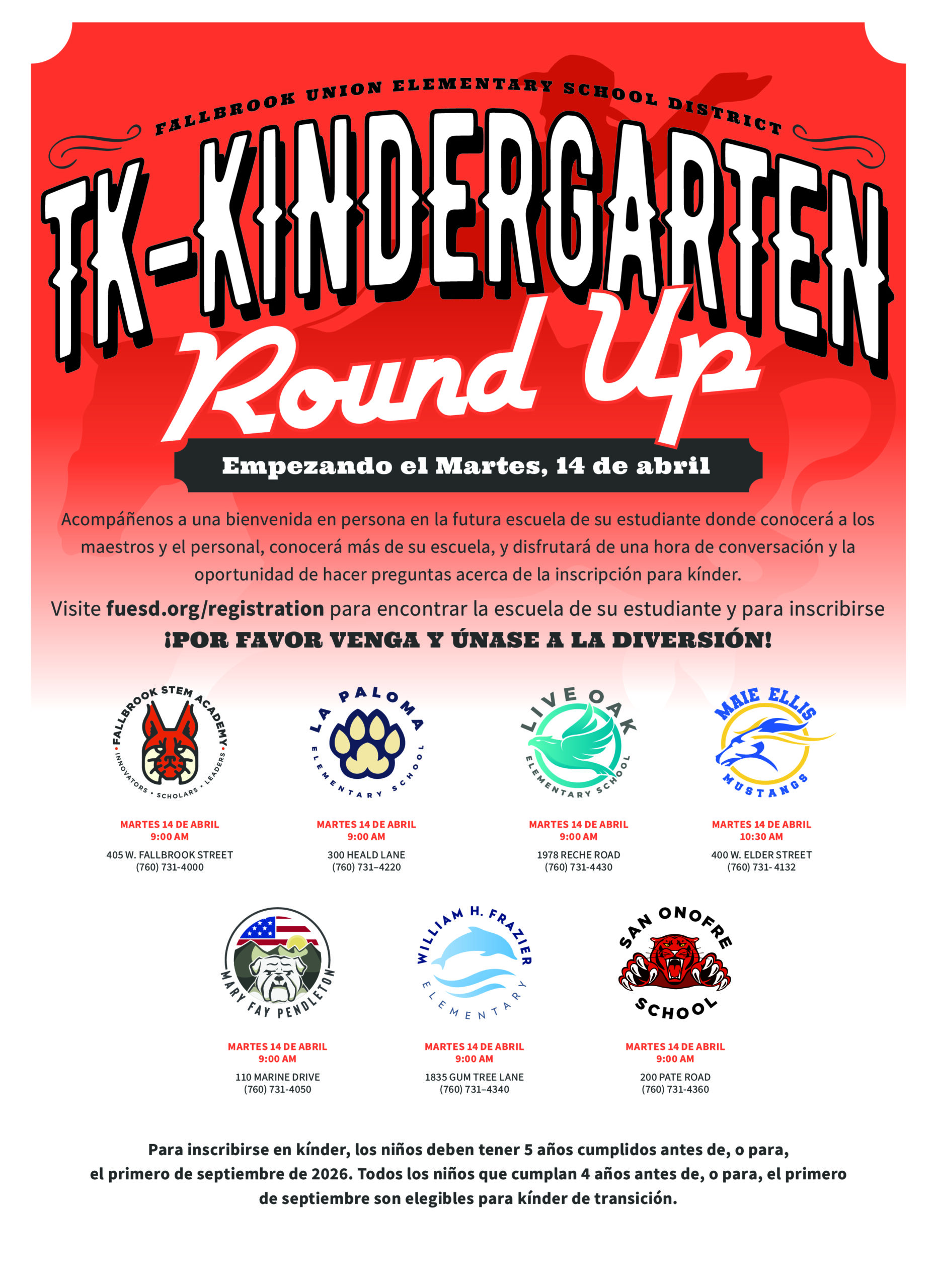 Find your school, event details, and everything you need to register here: fuesd.org/registration